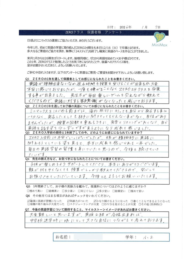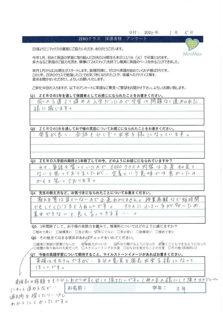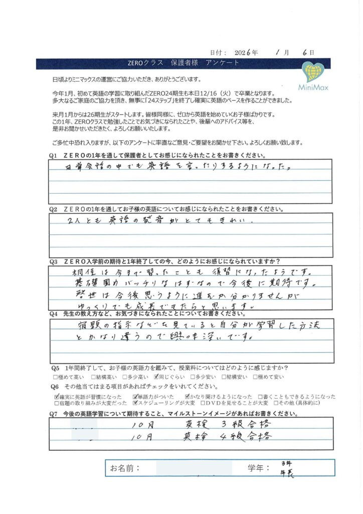 ZERO7期/10期/12期生のご兄弟の保護者様
